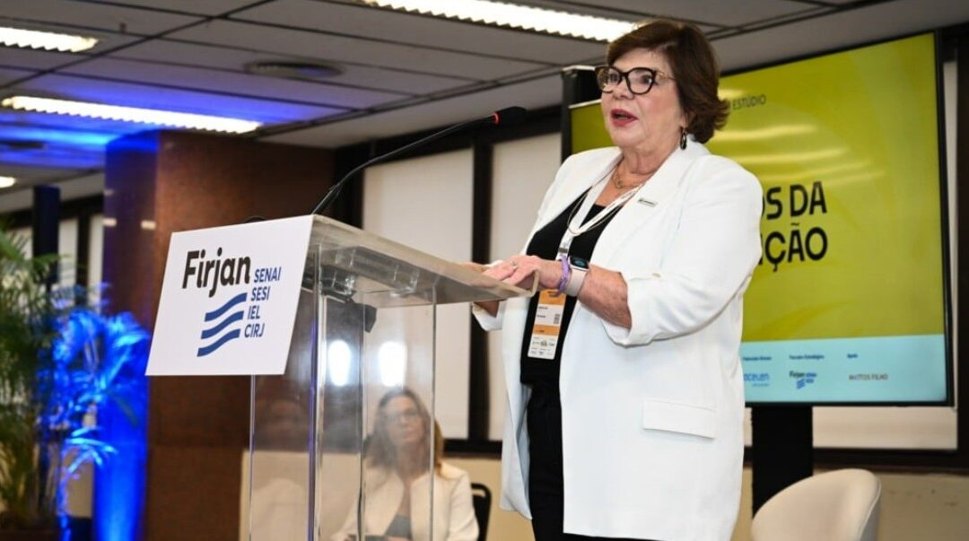 Diretora de Transição Energética da Petrobras, Angélica Laureano, fala durante a abertura dos diálogos da transição 2025, na sede da Firjan no Rio, em 24 de outubro (Foto: Juliana Rezende/agência eixos)